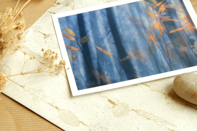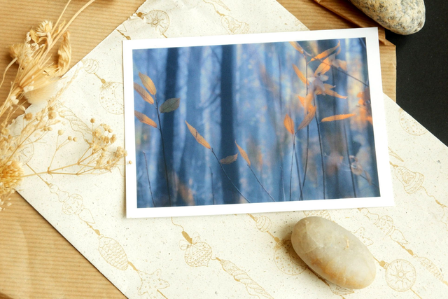 Impression de deux photographies prises en automne en forêt. Idéal pour une décoration à prix réduit, pour accompagner un cadeau, écrire et envoyer une petite oeuvre d'art à vos proches, collectionner....