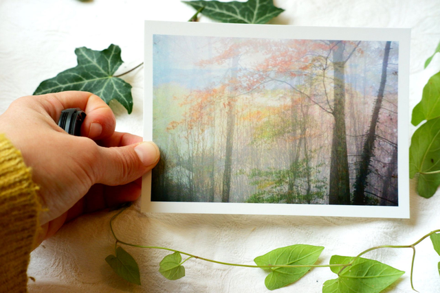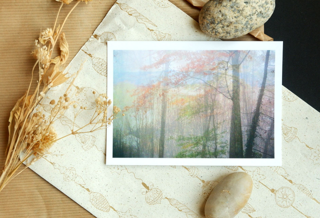 Création photographique obtenue par juxtaposition de deux de mes photographies. j'ai ensuite joué sur les couleurs et les transparences. Evadez-vous dans les brumes et les rêves avec cette carte!