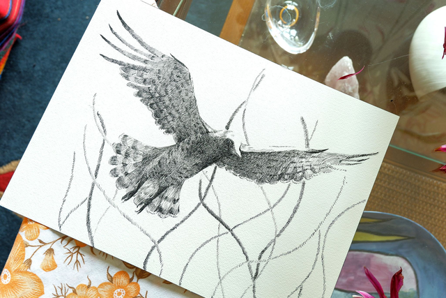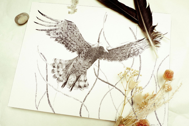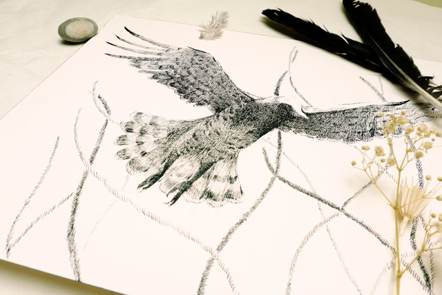 Illustration noir et blanc "Le vol du circaète"