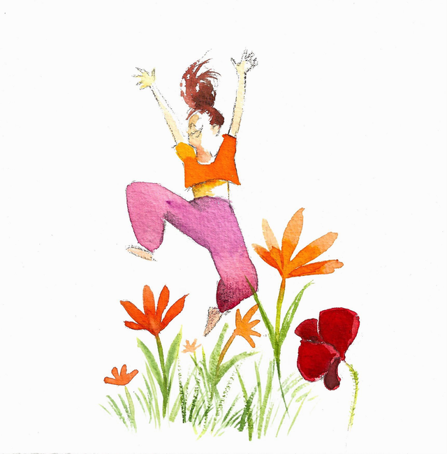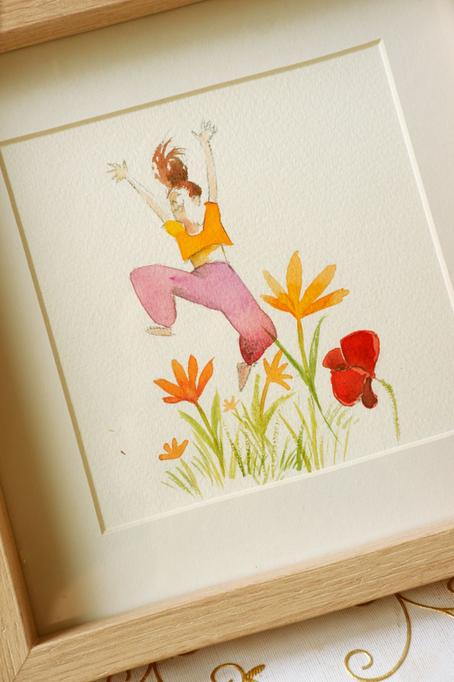 Une illustration toute sautillante, pour vous rappeler les longues journées d'été, où l'on se prélasse, passe du temps avec les ami.e.s, marche, randonne... au milieu des champs fleuris, de la joie des vacances... Retrouvez un peu d’insouciance avec "Vive l'été", une illustration originale réalisée à l'aquarelle, qui vous donnera des ailes!