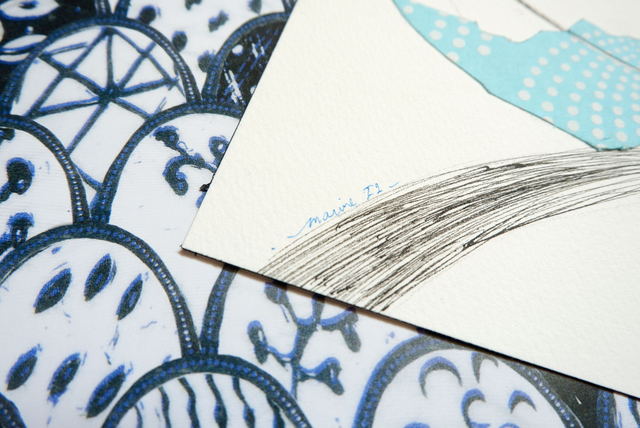 Illustration originale noir et blanc et papier découpé